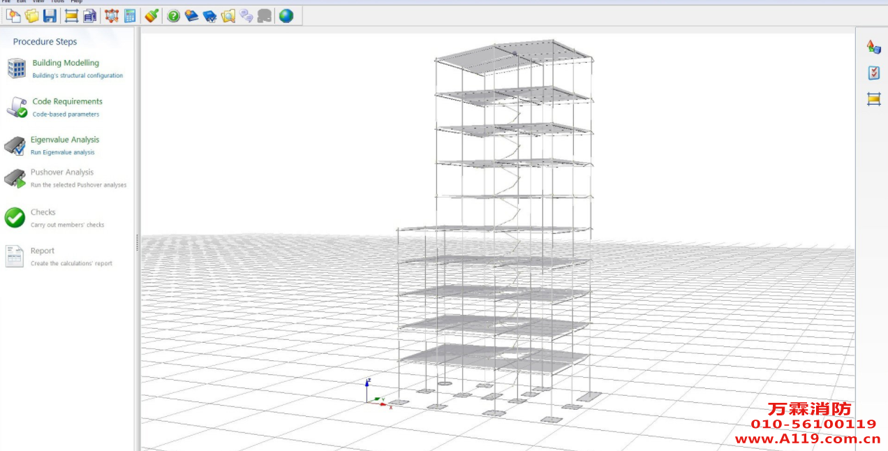 建筑模型 3D樓層視圖 3D模型 玻璃鋼和樓梯分配 不同的基礎水平 顯示有限元模型 代碼要求 變形的形狀查看器 變形的形狀查看器 會員支票 接頭檢查 報表生成器 報告預覽